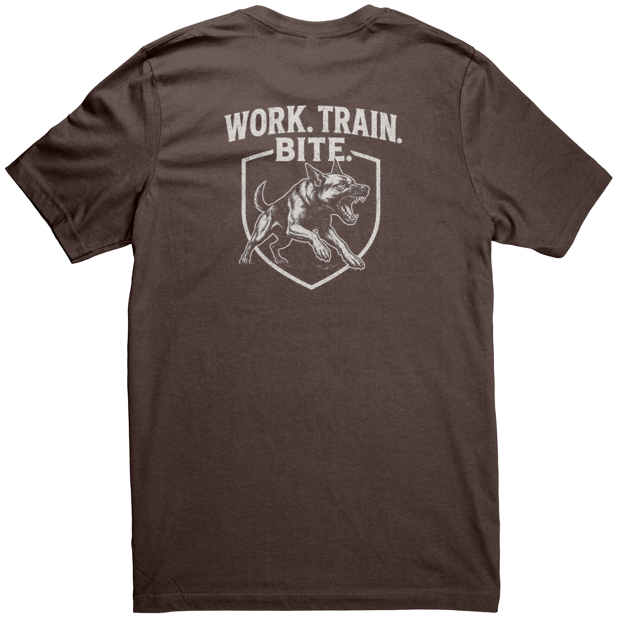 Built for handlers, trainers, and dog owners who live the lifestyle — the WORK.TRAIN.BITE.™ Tee from M&W Canine delivers everyday comfort, durability, and that clean look that works both in the field and off-duty.